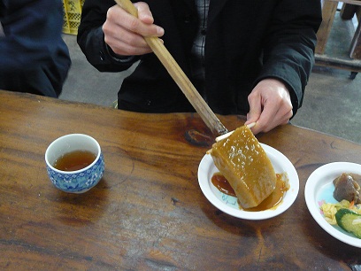 こんにゃくの他に煮物やお漬物などもあって、自由に食べることができました。