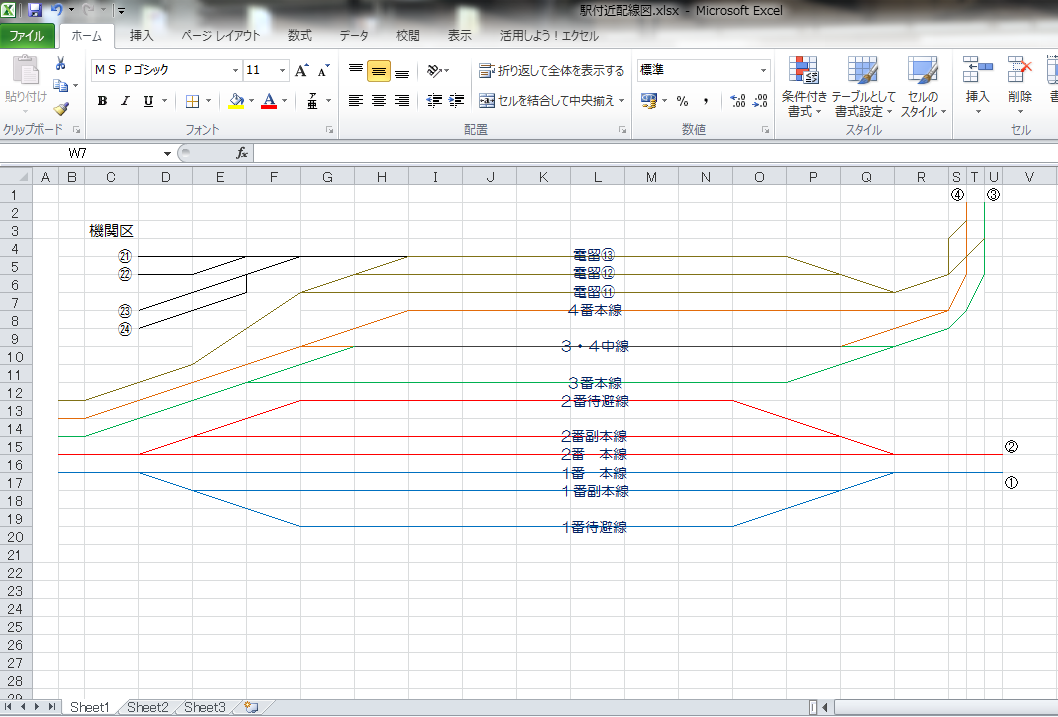 駅構内の配線図はこんな感じ。